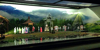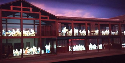 幻影成像系統(tǒng)的主體模型場(chǎng)景,為光學(xué)成像創(chuàng)造環(huán)境空間。造型燈光系統(tǒng)根據(jù)場(chǎng)景造型的要求和劇情的需要,在可編程控制器的控制下,光學(xué)成像系統(tǒng)與影視播放系統(tǒng)完成活動(dòng)三維立體視頻在場(chǎng)景造型上的再現(xiàn)。